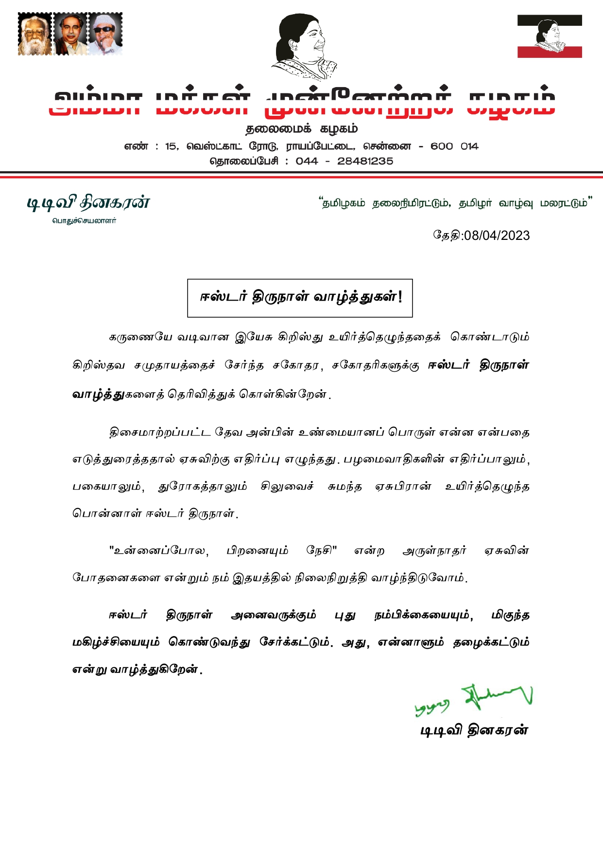 April 8, 2023 In பத்திரிகை வெளியீடுகள்‚ பொதுச்செயலாளர் அறிக்கைகள் | Secretary General Reports 0 ஈஸ்டர் திருநாள் வாழ்த்துகள்!